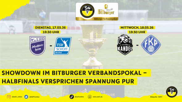 Der Bitburger Verbandspokal biegt auf die Zielgerade ein und die Spannung könnte kaum größer sein. Heute und Morgen stehen die beiden Halbfinalspiele an, in denen sich entscheidet, welche Teams den Sprung ins große Endspiele am 23. Mai 2026 schaffen.