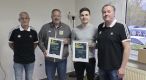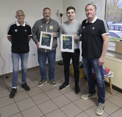 Tolle Auszeichnung für zwei Schiedsrichter des Fußballkreises Kaiserslautern-Donnersberg: Michael Vatter und Felix Pallmann-Heger wurden im Rahmen der DFB-Aktion "Danke Schiri" geehrt. Kreisvorsitzender Klaus Schneider und Kreisschiedsrichterobmann Frank Ritter überreichten die Urkunden und lobten das herausragende Engagement der beiden Schiedsrichter und ihre durchgehend hervorragenden Leistungen. Sie hoben auch den Einsatz der beiden hervor, der weit über das Geschehen auf dem Platz hinausgeht: Michael Vatter führt seit Jahren den Freundeskreis der Kreisschiedsrichtervereinigung, Felix Pallmann-Heger fungiert als stellvertretender Vorsitzender des Kreisjugendausschusses.