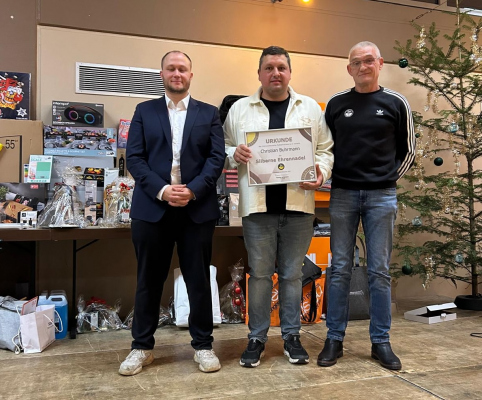 Für sein vielfältiges und langjähriges Engagement beim FC Eiche Sippersfeld hat Christian Buhrmann die Silberne Ehrennadel des SWFV erhalten. Kreisvorsitzender Klaus Schneider nahm die Ehrung im Rahmen der Weihnachtsfeier des Vereins vor.