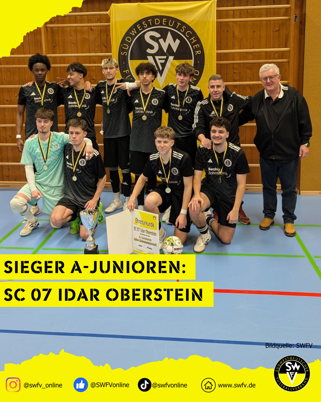 Im abschließenden Finale sicherte sich der SC 07 Idar Oberstein mit einem souveränen 4:0-Sieg die Südwestmeisterschaft der B-Junioren. Die beiden Finalisten vertreten den SWFV bei den Futsal-Regionalmeisterschaften der B-Junioren am Samstag, den 28.02., in Monsheim.