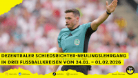 Die Kreisschiedsrichtervereinigungen Kusel-Kaiserslautern, Pirmasens-Zweibrücken und Birkenfeld veranstalten vom 24. Januar bis 1. Februar 2026 einen dezentralen Schiedsrichter-Neulingslehrgang in den Räumlichkeiten des FV 1919 Kusel. Der Lehrgang richtet sich an alle Interessierten, die die Schiedsrichterausbildung absolvieren und zukünftig Spiele
