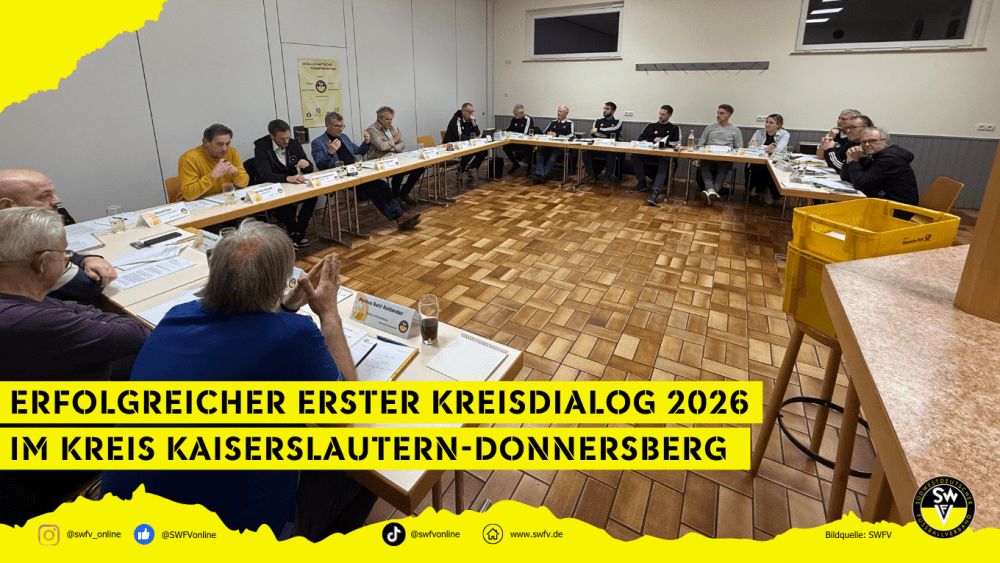 Am Dienstag, den 27. Januar 2026, fand im Vereinsheim des SV Gundersweiler der erste Kreisdialog des Jahres 2026 statt. Präsident Thomas Bergmann leitete die Veranstaltung und begrüßte die zahlreich anwesenden Mitglieder des Kreisausschusses. Gemeinsam mit dem geschäftsführenden Präsidium des SWFV tauschte man sich zu verschiedenen Themen aus.