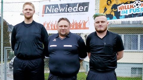 "Vor acht Tagen hat mich der Südwestdeutsche Fußball-Verband kontaktiert", erzählt Robert Hoffmann, der gemeinsam mit seinen Linienrichtern Lucas Hagen und Sven Forsch das Spiel der beiden Kreisligamannschaften Vitesse Mayence gegen 1. FC Schwabsburg leitete. "Als man uns den Anlass nannte, haben wir drei sofort zugesagt." SWFV-Referent Timo Hammer und auch die DFB-Stiftung Sepp Herberger hatten telefoniert und gemailt und dadurch dieses besondere Spiel erst möglich gemacht.
