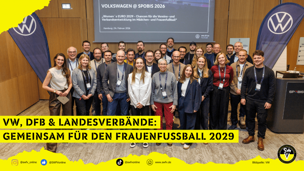 Mit Blick auf die UEFA WOMEN´S EURO 2029 in Deutschland rückt unser Partner Volkswagen gemeinsam mit Vertreterinnen und Vertretern aus Sport, Verbänden und Wirtschaft die nachhaltige Entwicklung des Frauen- und Mädchenfußballs in den Fokus. Im Rahmen eines hochkarätig besetzten Panel-Talks diskutierten Nationalspielerin Sophia Kleinherne vom VfL Wolfsburg, Mark Schober (Vorstandsvorsitzender Deutscher Handballbund), Jürgen Eißmann und Patrick Kisko (beide DFB EURO GmbH) sowie Josephine Finck (Volkswagen AG) über Erfolgsfaktoren großer Sportevents, Chancen & Herausforderungen für die Vereine im Frauen- und Mädchenfußball und die zentrale Rolle des Ehrenamts. Der Panel-Talk fand im Rahmen der SPOBIS Conference 2026, der größten Sportbusiness-Veranstaltung Europas, in Hamburg statt.