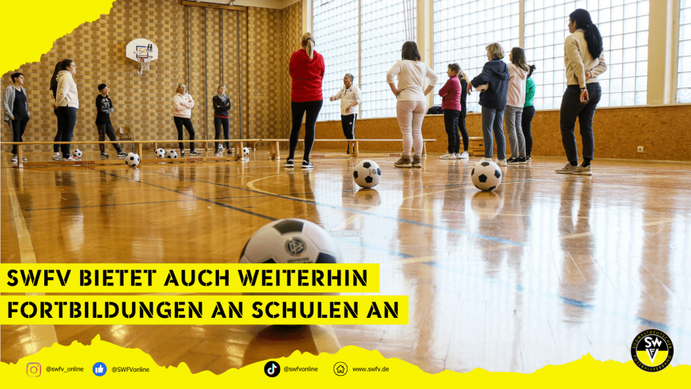 Der Südwestdeutsche Fußballverband bietet auch in diesem Jahr wieder kostenlose Fortbildungen für Lehrerinnen und Lehrer sowohl für den Grundschulbereich als auch für weiterführende Schulen an. Die Fortbildungen werden „vor Ort“ in den Schulen durchgeführt; die Teilnehmer erhalten neben Broschüren mit vielen Praxis-Tipps zusätzlich auch kostenloses Ballmaterial für den Unterricht.