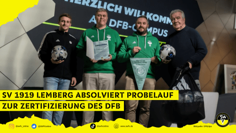 Der SV 1919 Lemberg ist als Vertreter des Südwestdeutschen Fußballverbandes (SWFV) und einer von 21 Fußballvereinen in ganz Deutschland für ein Zertifizierungsprojekt des DFB ausgewählt worden. Die Abschlussveranstaltung mit Zertifikatsübergabe fand am 20. und 21. Februar am DFB Campus in Frankfurt statt.