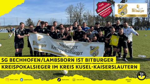 Die SG Bechhofen/Lambsborn hat sich am Ostermontag den Bitburger Kreispokalsieg im Fußballkreis Kusel-Kaiserslautern gesichert. Im Endspiel in Schönenberg-Kübelberg setzte sich Bechhofen/Lambsborn in einer intensiven und spannenden Partie mit 2:1 (2:1) gegen den SV Kottweiler-Schwanden durch.