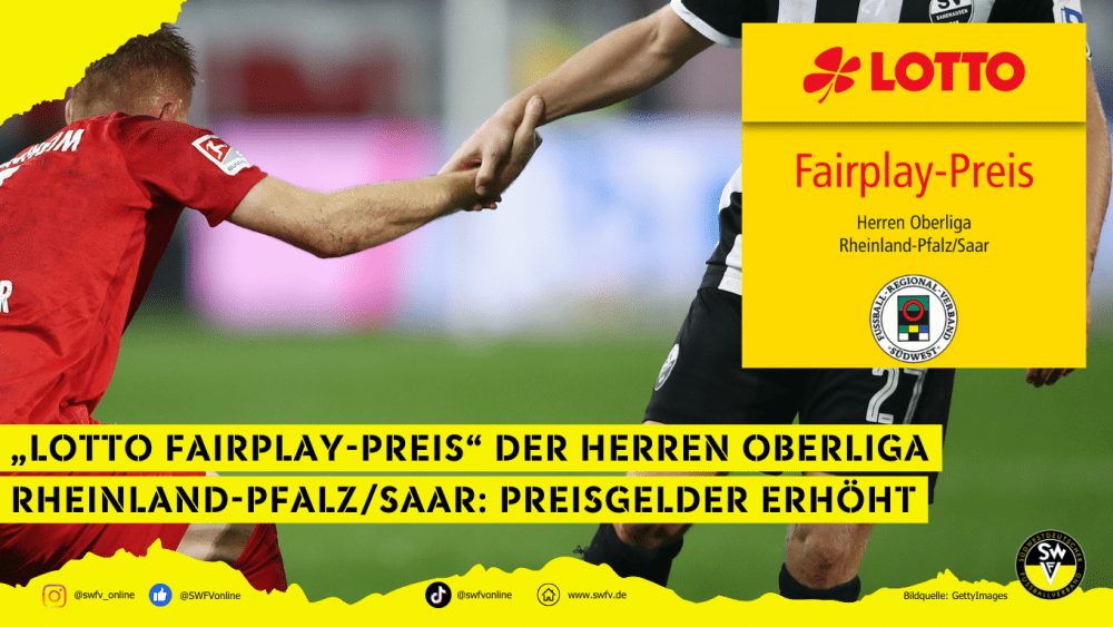 Seit 2016 vergibt der Fußball-Regional-Verband „Südwest“ mit Unterstützung der Saarland Sporttoto GmbH und der Lotto Rheinland-Pfalz GmbH jährlich den „LOTTO Fairplay-Preis“ der Herren Oberliga Rheinland-Pfalz/Saar. Es werden damit die fairsten Mannschaften belohnt und unter anderem das Ziel verfolgt, die Anzahl der gelben, gelb-roten und roten Karten zu senken und ebenso die neg ativen Vorkommnisse durch Trainer, Betreuer oder Zuschauer.